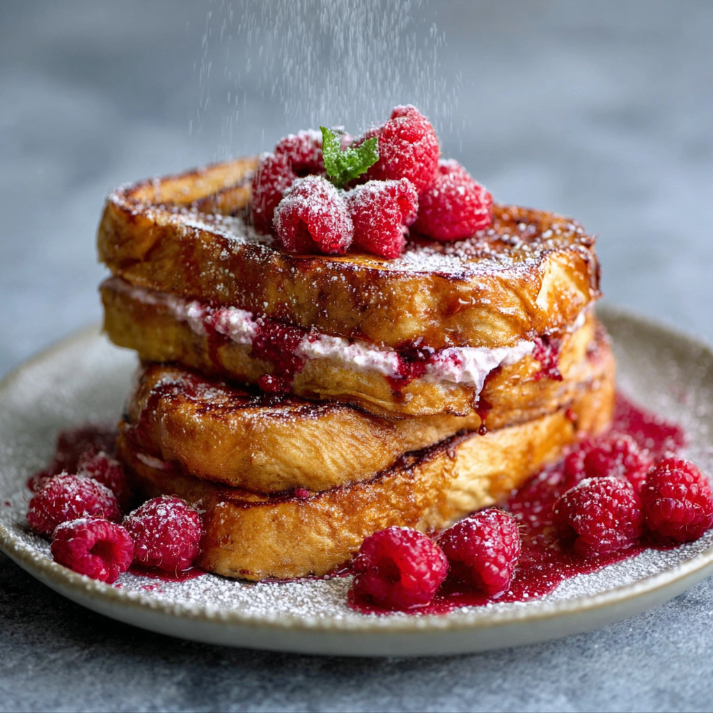 This Brioche French Toast with Creamy Raspberry Cheesecake filling is a rich and indulgent breakfast treat, perfect for special mornings or weekend brunch.