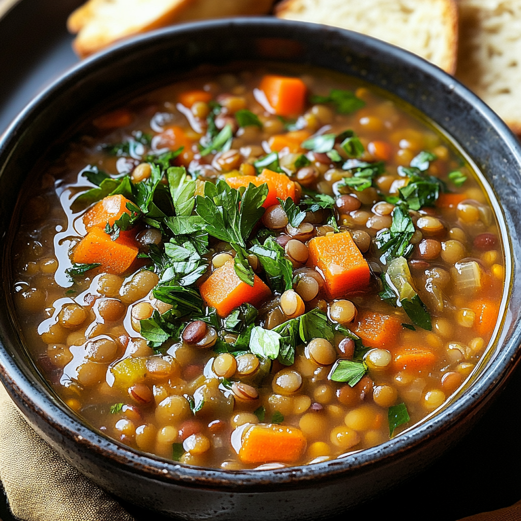 Mediterranean Lentil Soup is a hearty and nutritious dish made with lentils, vegetables, spices, and lemon juice. It’s perfect for a comforting meal.