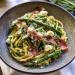 Spicy Pesto, Asparagus, and Ricotta Pasta with Crispy turkey slices is a delightful dish that combines fresh flavors and simple techniques. This recipe is perfect for busy weeknights or casual gatherings, offering a quick yet impressive meal packed with taste. The standout feature of this dish is its vibrant pesto paired with tender asparagus and creamy ricotta, topped off with crispy turkey slices for an extra crunch.
