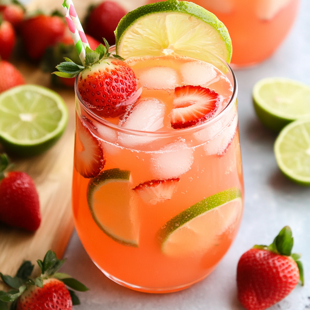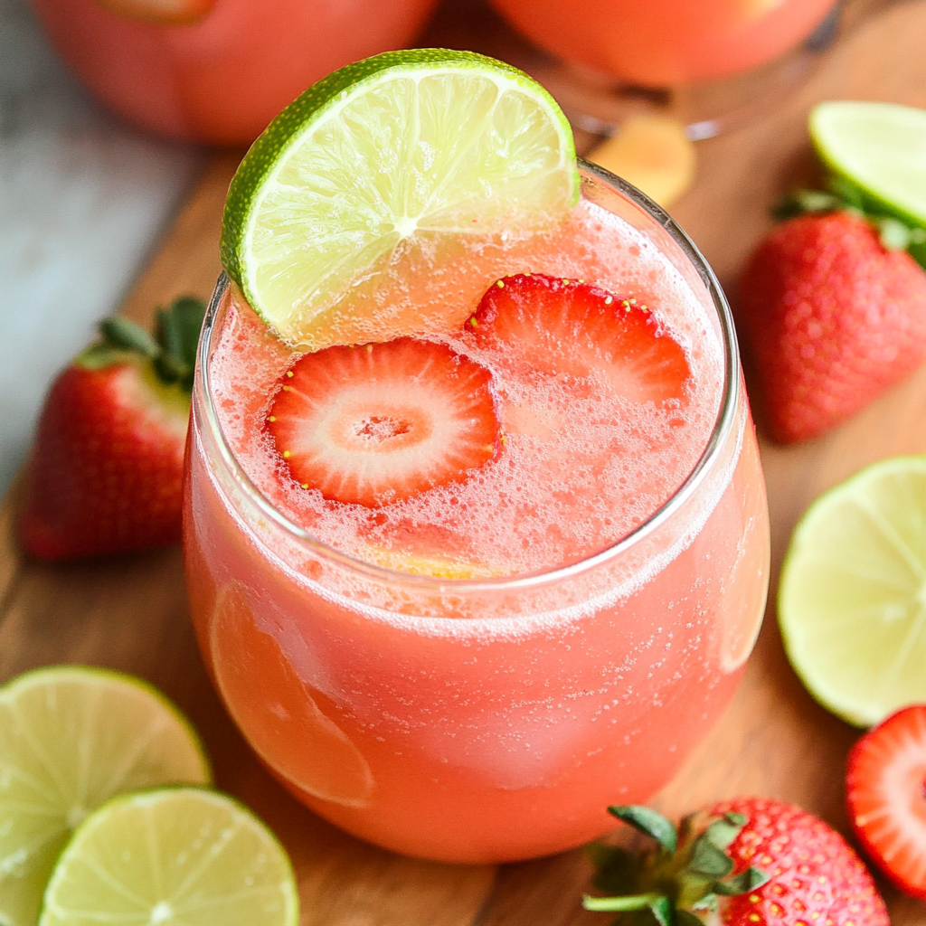 Tart and Sweet Strawberry Limeade is a refreshing drink made with fresh strawberries, lime juice, and simple syrup, perfect for warm days or gatherings.