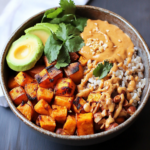 The Thai Peanut Sweet Potato Buddha Bowl is a delightful and vibrant dish that combines roasted sweet potatoes, fresh vegetables, and a creamy peanut sauce. This nourishing meal is perfect for various occasions, whether you’re looking for a healthy lunch, a quick weeknight dinner, or prepping meals for the week. With its bold flavors and colorful presentation, this bowl will satisfy your taste buds while providing essential nutrients.